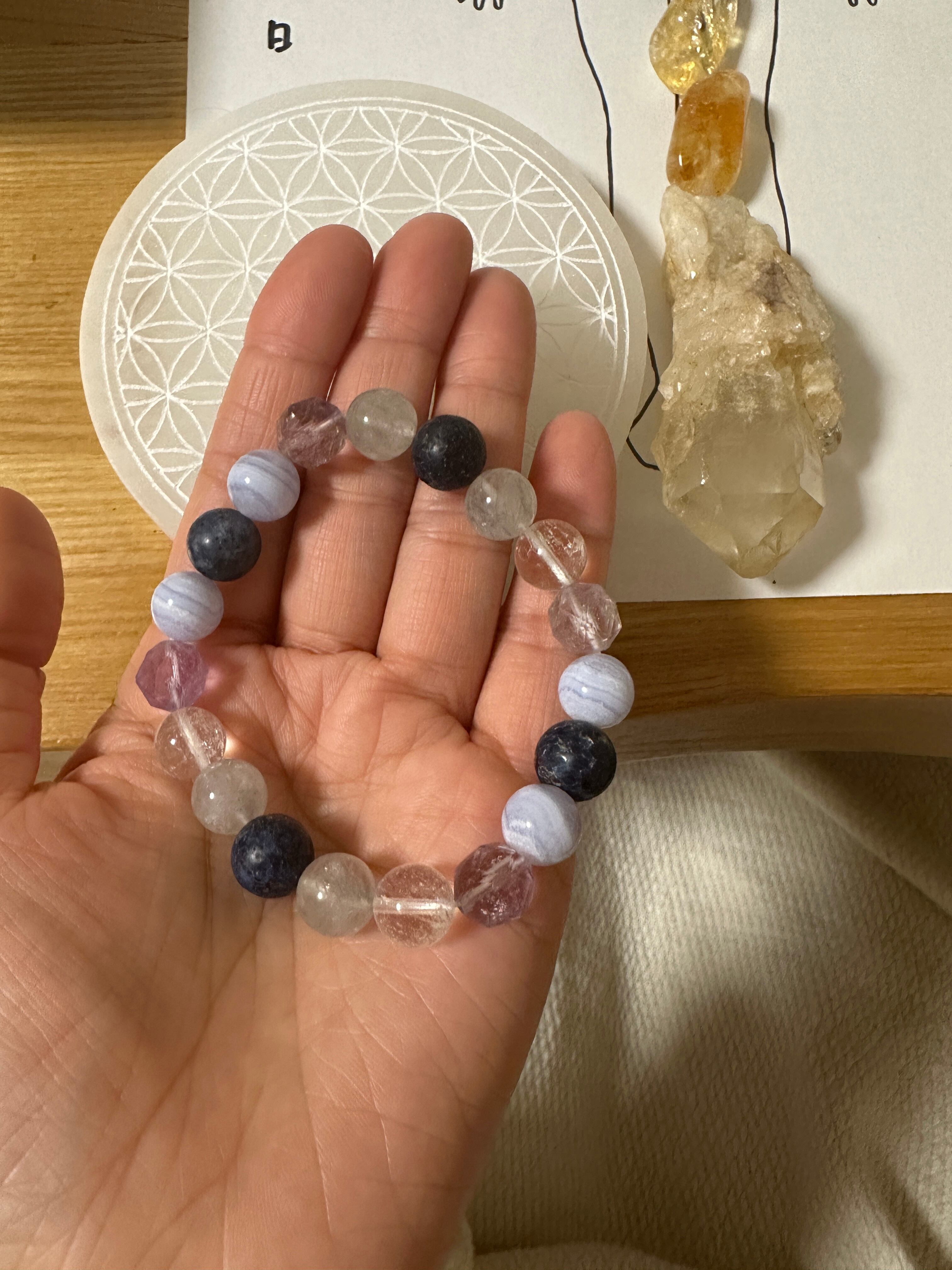制作の際には、まずあなたのエネルギーをクリアリングし、ハイヤーセルフとつながった状態で今のあなたに本当に必要なクリスタル を選び、丁寧にお作りします。